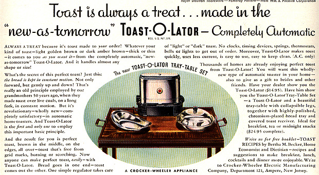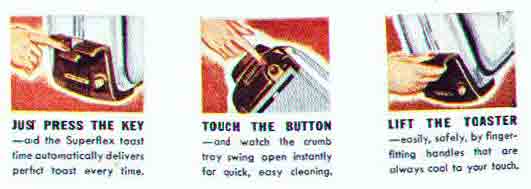 Scott and Kristina in Des Moines bought this model toaster and wrote We love watching our toast go through our Toast O Later? Hard to believe it is 70 years old! I hope we bring US made and US innovation back! This is so what we used to be!!!! Love the instructions that came with it!! Todd in Portland, Oregon bought this model toaster and wrote I've never had so much fun with a kitchen appliance before--thanks a million. |