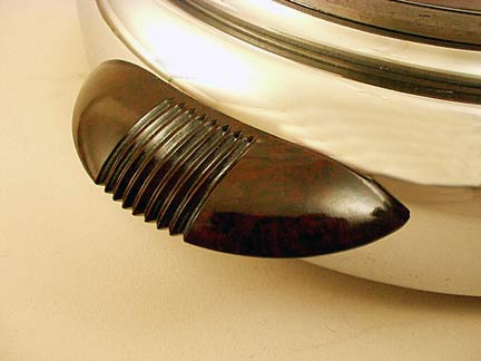 General Electric WestportGeneral Electric produced this stylish high quality, non-automatic waffle iron, so well engineered that it self regulates -- as long as it's kept full of batter it will not overheat. It will turn out an endless stream of waffles which measure 6 1/2 inches in diameter until the batter is gone. This model is a good choice if you are looking for a waffle iron made in America. But then, all the waffle irons we sell were made in the United States.With "textolite" handles and absence of a thermostat, this model was sold from the late 1930s until the late 1940s. This one is in excellent condition. We've disassembled it, and tested it for operation up to specification. We include a detachable cord set, our instructions for seasoning the grids, tips, and lots of waffle recipes. General Electric Westport
